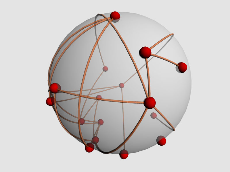 Force-directed spherical networks visualization
